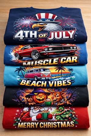 We make fun and vibrant DTF printed shirts for you! Wearing your favorite Vibranse shirts will feel great dnd exciting. Each shirt has cool, custom & vibrant themes with lots of different themes. All our T-shirts are printed in the USA and made to look and feel great!