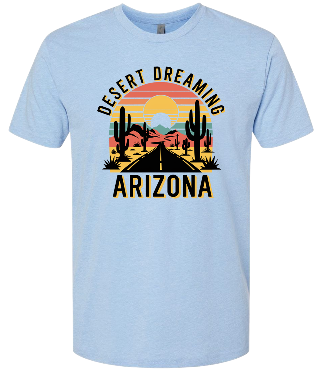 Embrace the spirit of the outdoors with our camping-themed t-shirt, designed for anyone who loves open skies, fresh air, and the freedom of the wild. Featuring nature-inspired quotes like “Desert Dreaming Arizona” this shirt captures the magic of quiet nights under the stars, warm campfires, and long scenic trails. With nine different colors to choose from—ranging from earthy tones to vibrant outdoor hues—you can find the perfect match for your style or your camping gear. Its lightweight feel and modern fit make it easy to pair with jeans, shorts, or your favorite hiking pants. This shirt is ideal for campers, travelers, and outdoor lovers who live for fresh horizons and unforgettable journeys.