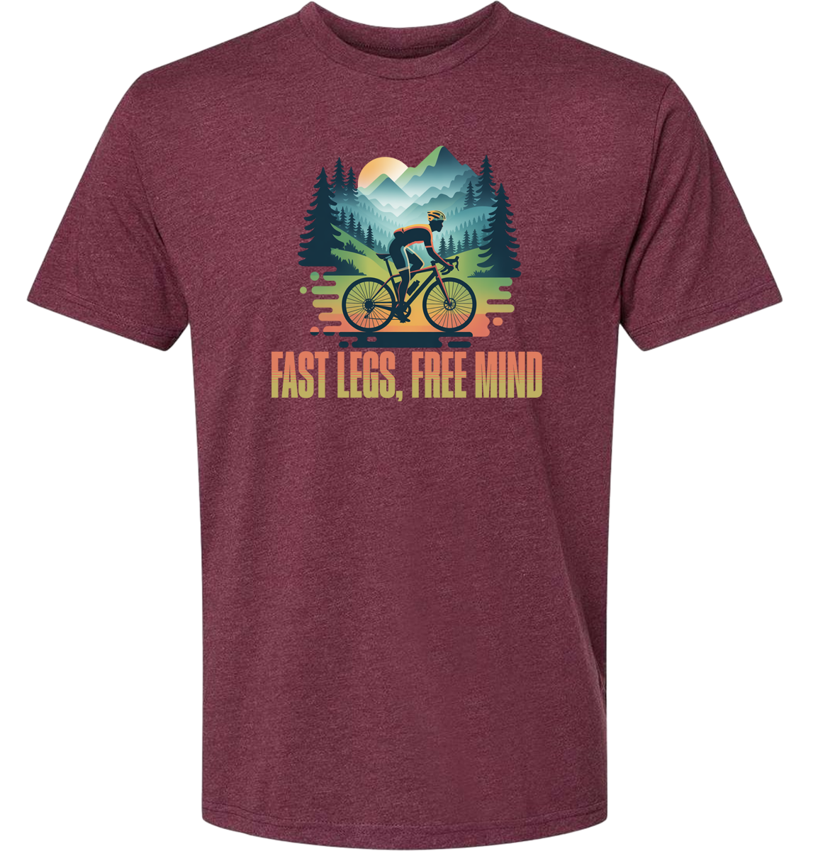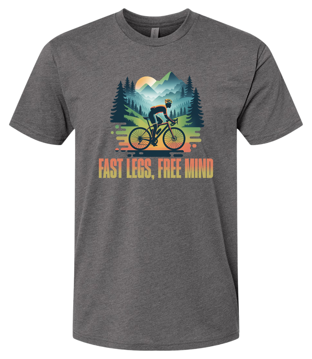 Show off your love for cycling with our “Fast Legs, Free Mind” t-shirt, featuring a clean, eye-catching design of a man riding a bicycle. Made from soft, breathable fabric, this tee delivers all-day comfort whether you’re commuting, exploring trails, or relaxing after a ride. Available in nine bold colors, it’s easy to match your style or your bike. The lightweight fit makes it perfect for everyday wear, and the fun message adds a playful touch for anyone who loves life on two wheels. It also makes a great gift for cyclists who enjoy expressing their passion wherever they go.